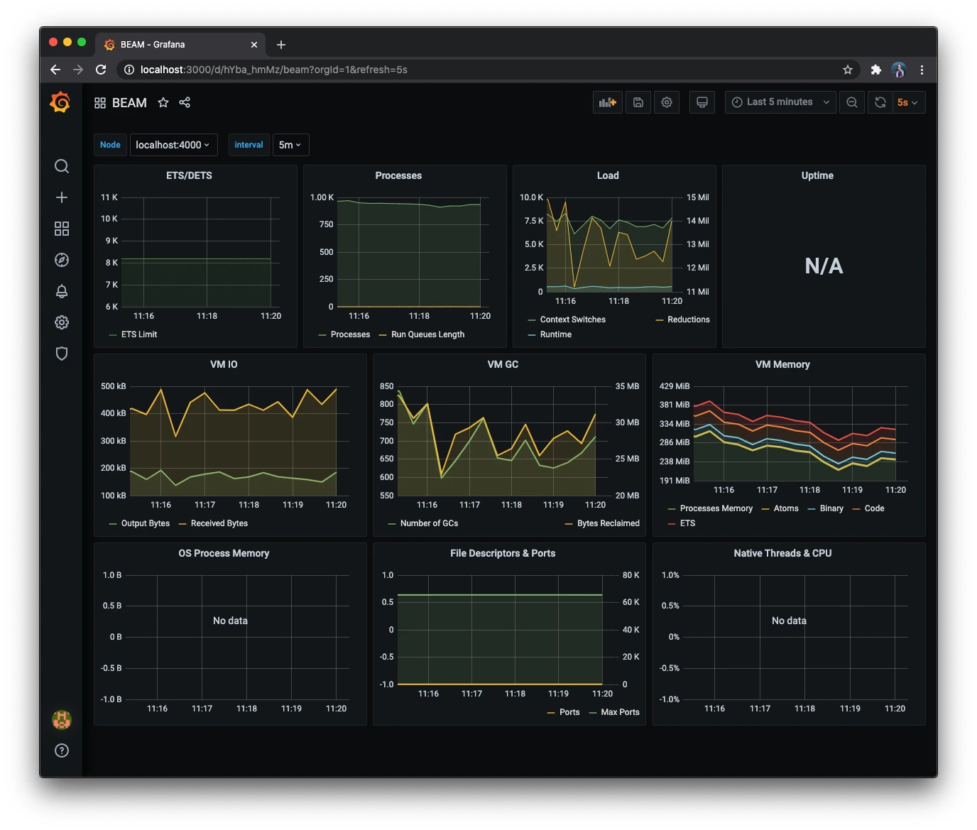 Add the dashboards from https://github.com/deadtrickster/beam-dashboards: For each